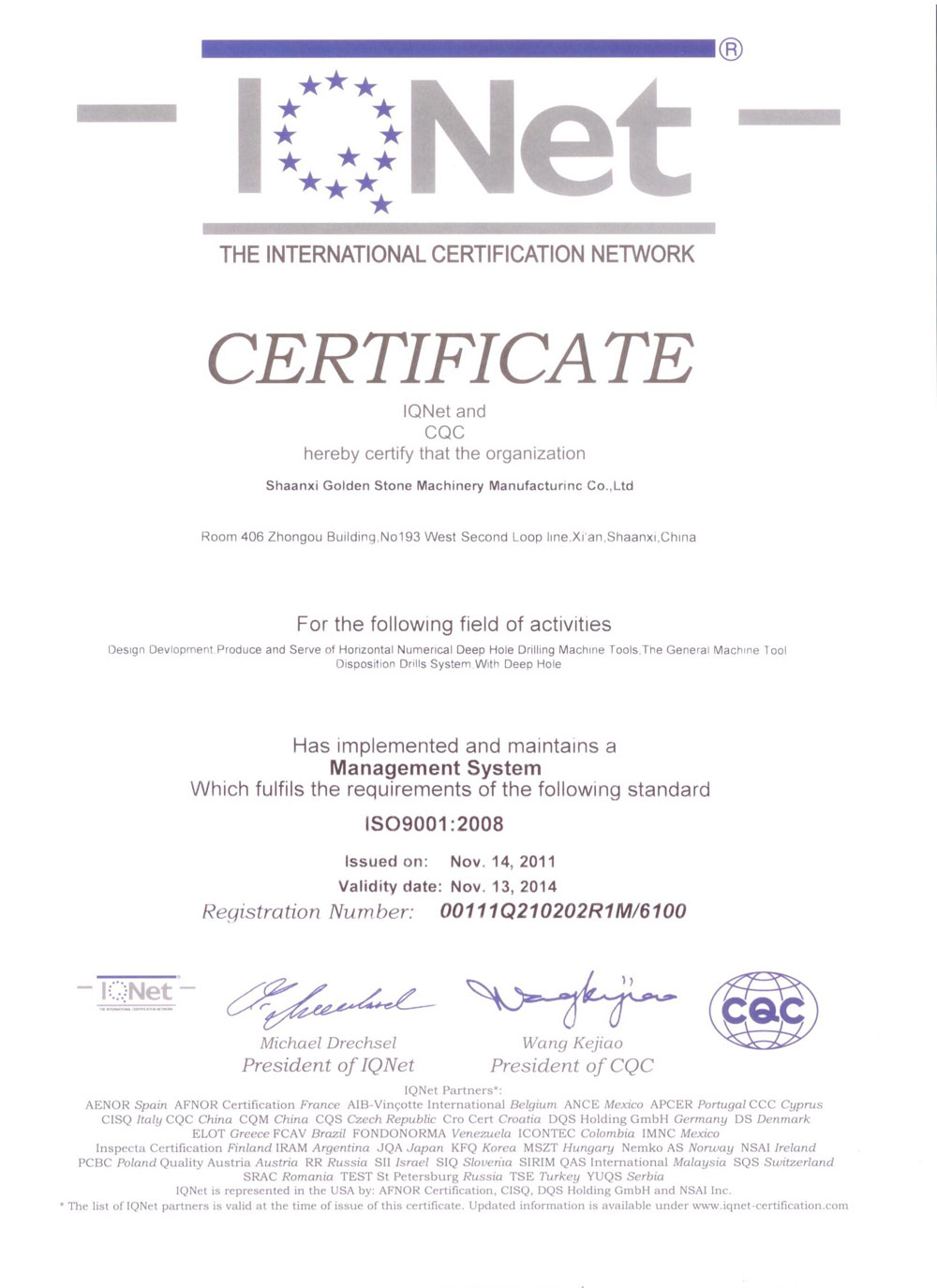 質(zhì)量管理體系認(rèn)證證書(shū)(英文版) 質(zhì)量管理體系認(rèn)證證書(shū)